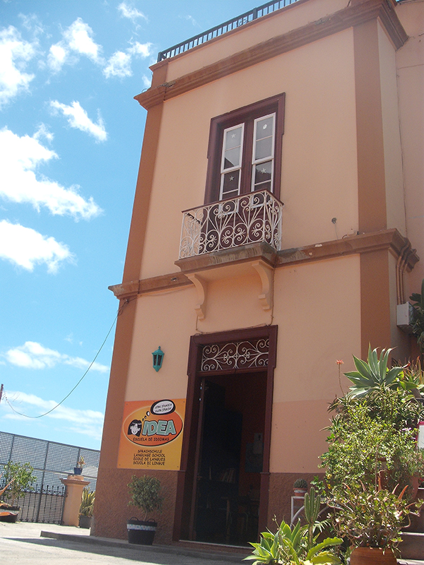 Die I.D.E.A. Sprachschule liegt in La Calera, einem der schönsten Dörfer der Kanarischen Inseln. Der Ort ist das Verwaltungszentrum der Gemeinde Valle Gran Rey, dem landschaftlich reizvollsten Gebiet der Insel La Gomera.  Das Schulgebäude ist eins der ältesten und besterhaltenen Häuser des Dorfes. Es wurde um die vorletzte Jahrhundertwende erbaut und war das Krankenhaus der Gemeinde.Das Haus liegt zentral über einen malerischen Treppenweg erreichbar.Von der Terrasse blickt man hinunter aufs Meer oder hinauf auf die Felsformationen des Tals.